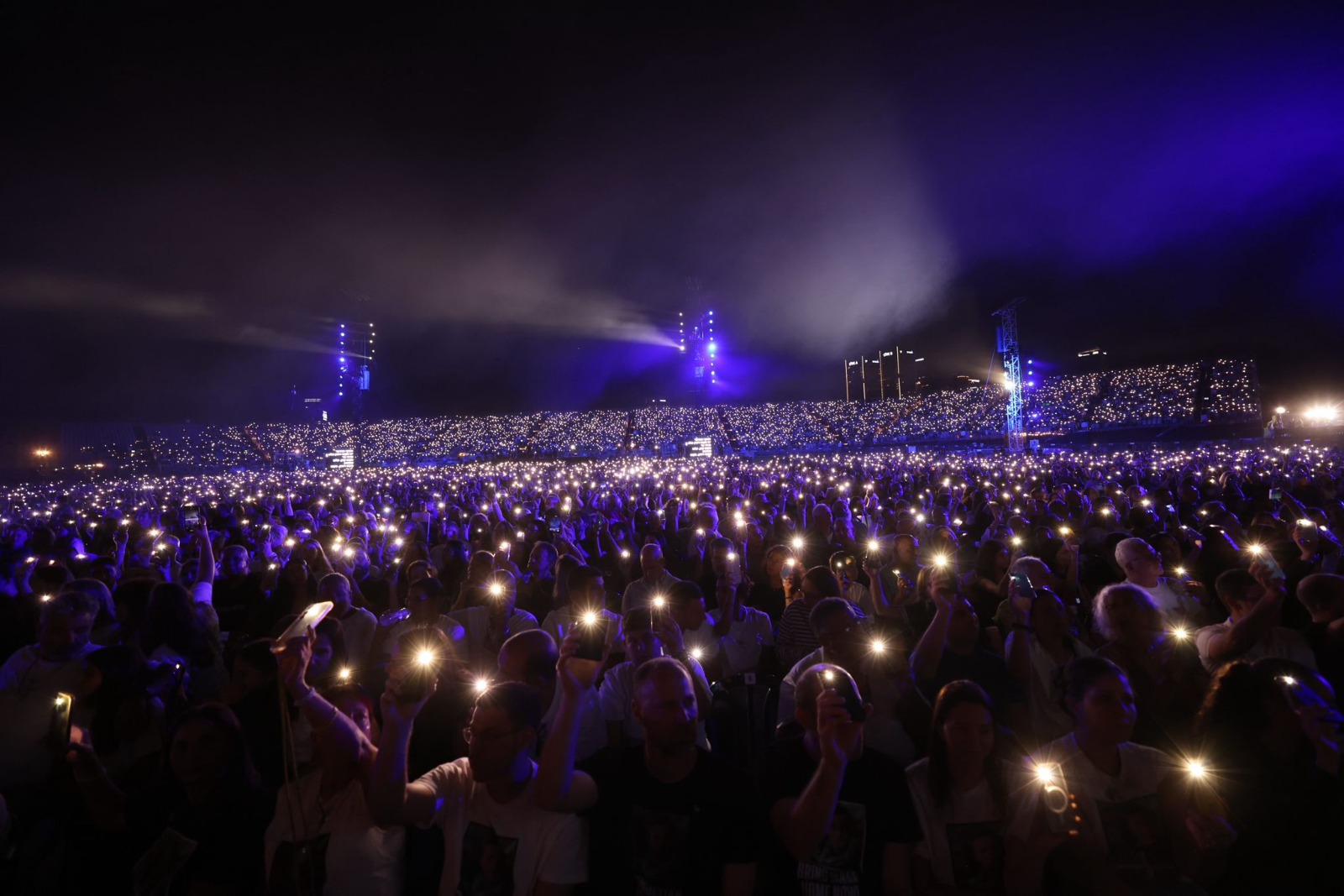 Tens of thousands filled Tel Aviv’s Yarkon Park on Tuesday night for the central national ceremony commemorating the second anniversary of the October 7 massacre. The event was aired live on national television and shown concurrently at a public screening in Tel Aviv’s Hostage Square.