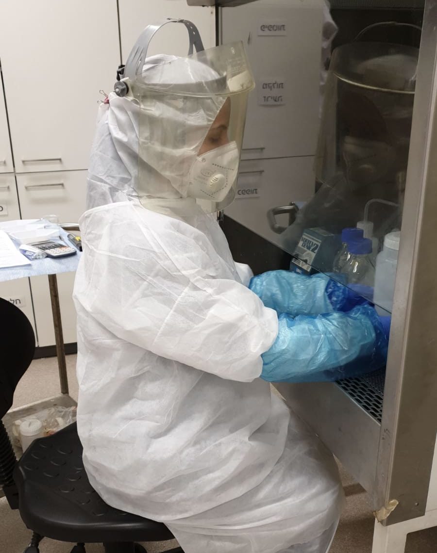 Prof. Ariel Kushmaro’s doctoral student Karin Yaniv testing sewage samples in the Environmental Biotechnology Lab, Ben-Gurion University of the Negev, Beersheba, Israel. (Eden Ozer)