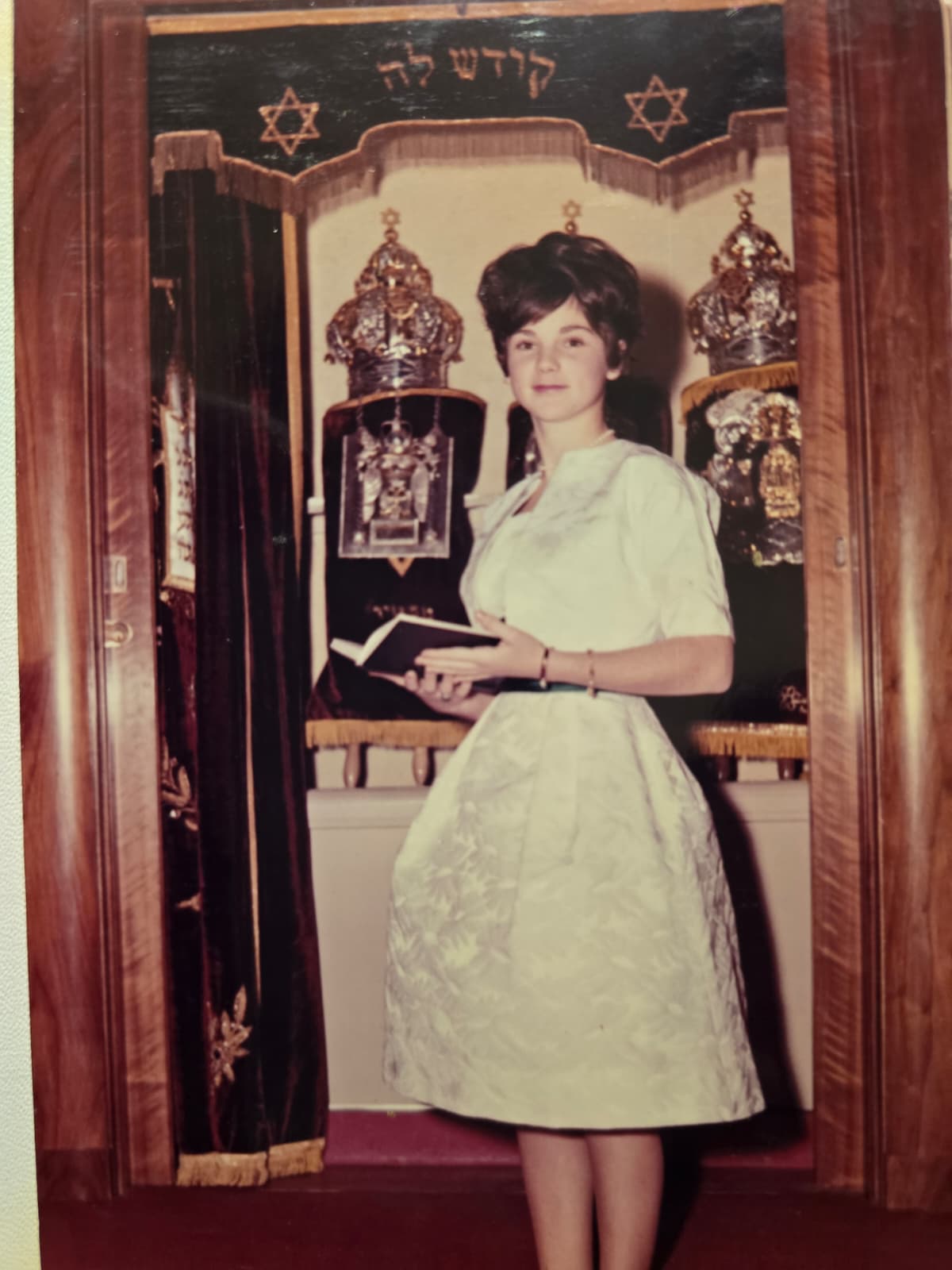 Tovah celebrates her Bat Mitzvah on the bimah of Temple Israel Center in White Plains, New York, Dec. 8, 1961. (Courtesy Tovah Feldshuh)