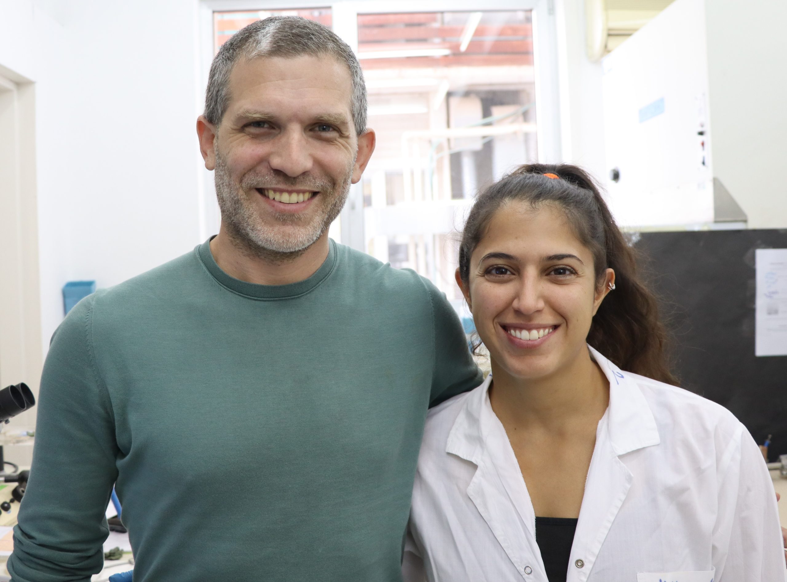 Dr. Ben Maoz of the Fleischman Faculty of Engineering and the Sagol School of Neuroscience at Tel Aviv University and doctoral student Neta Shvil. (Tel Aviv University)