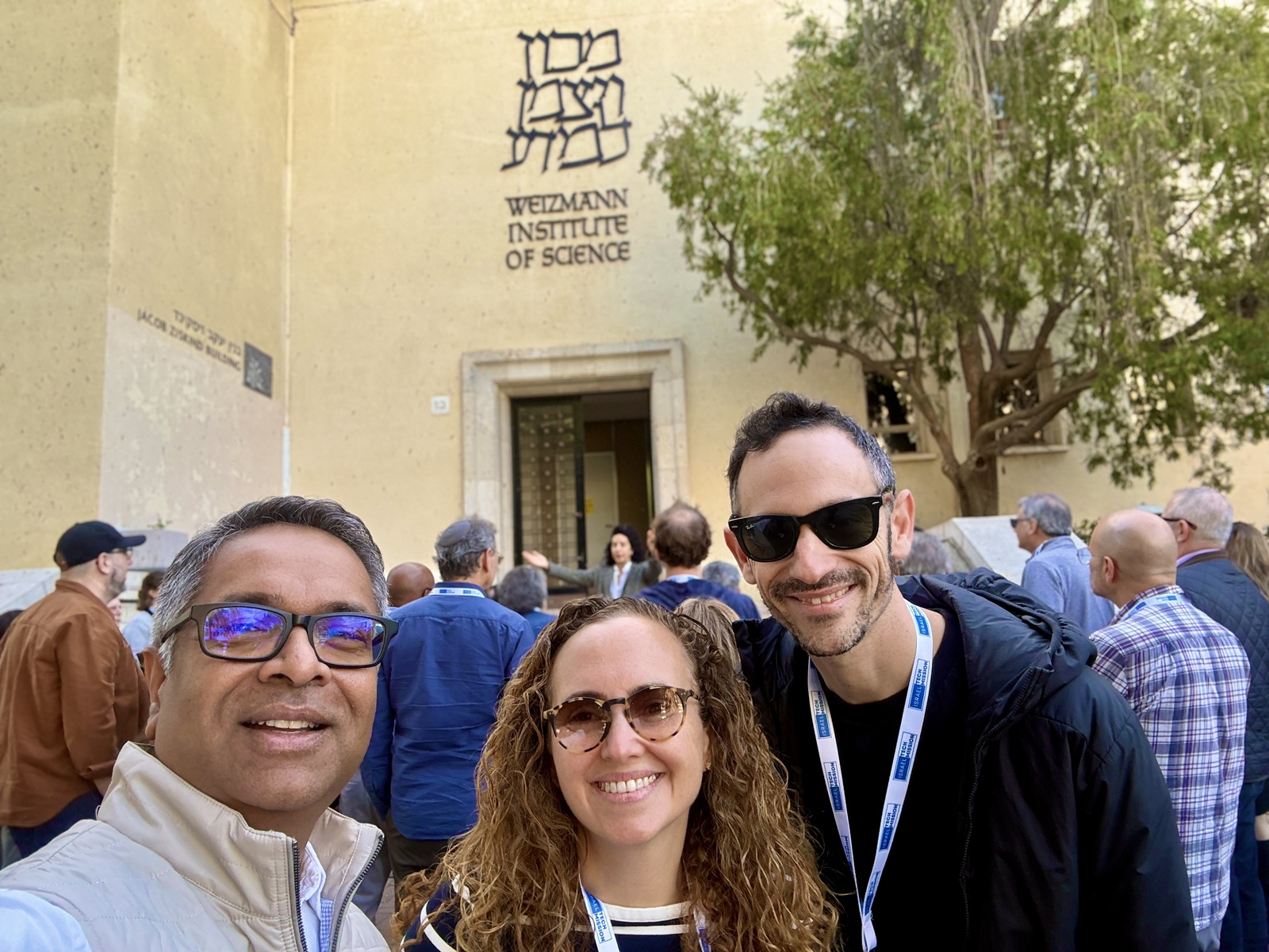 Members of the Israel Tech Mission, including Naama Stauber Breckler (C) and Adam Breckler (R), visit the Weizmann Institute of Science in Rehovot, Israel. (Courtesy Israel Tech Mission)