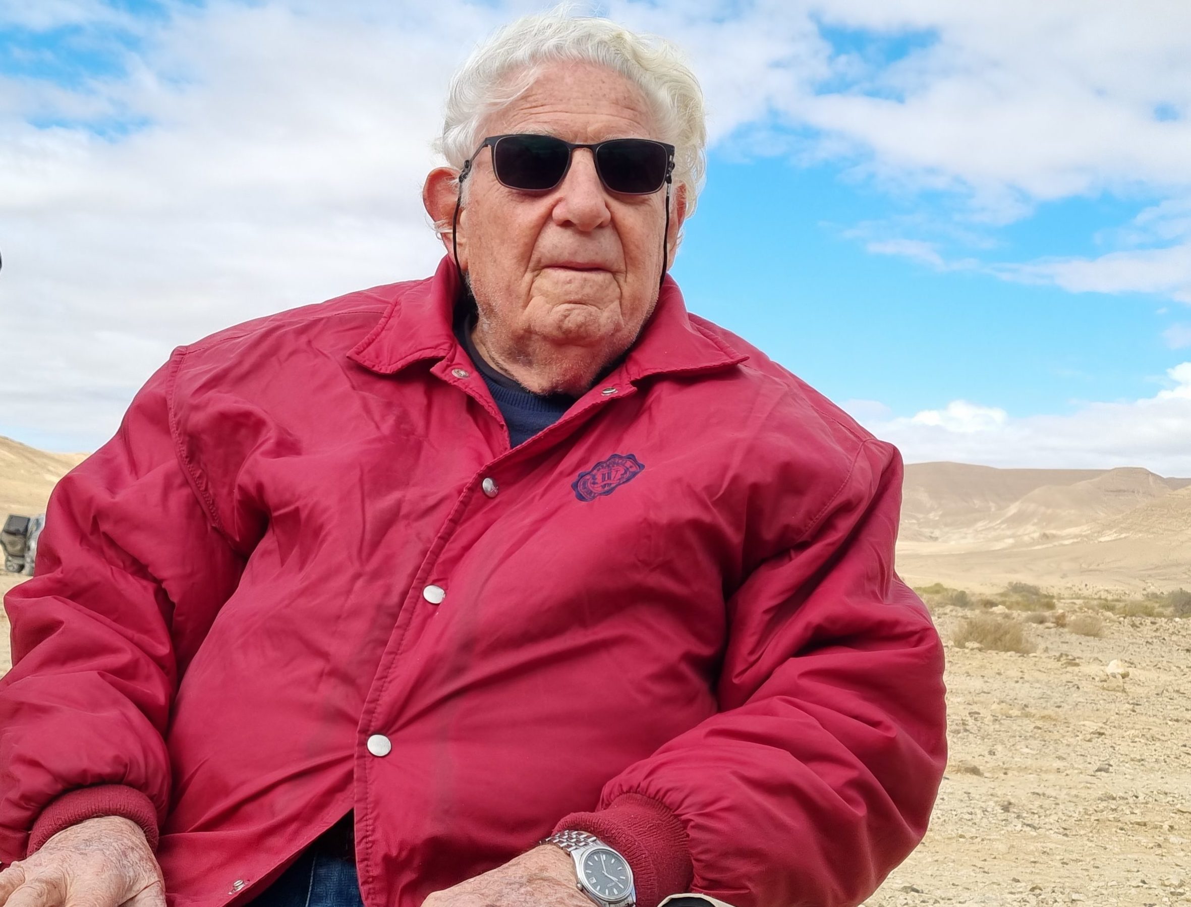 [1]Professor Emmanuel Anati, 91, sits at the base of Mount Karkom as hundreds prepare to climb up the mountain he first excavated in 1954, on Dec. 21, 2021. (Maya Margit/The Media Line)
