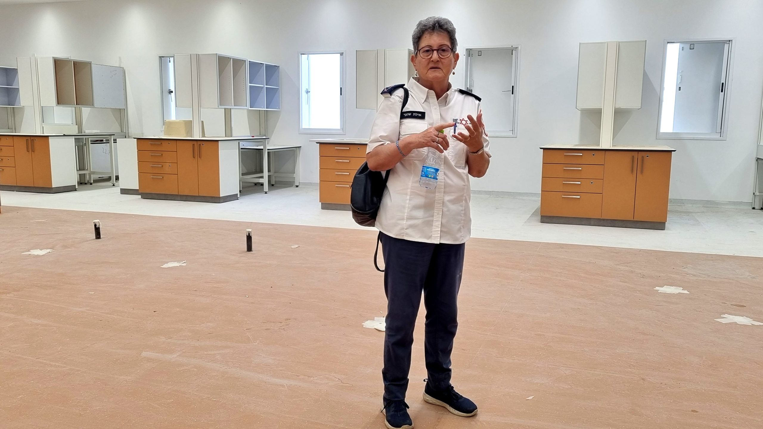 Professor Eilat Shinar, director of Magen David Adom’s National Blood Services Division, reviews a new laboratory at the Marcus National Blood Services Center. (Maya Margit/The Media Line)
