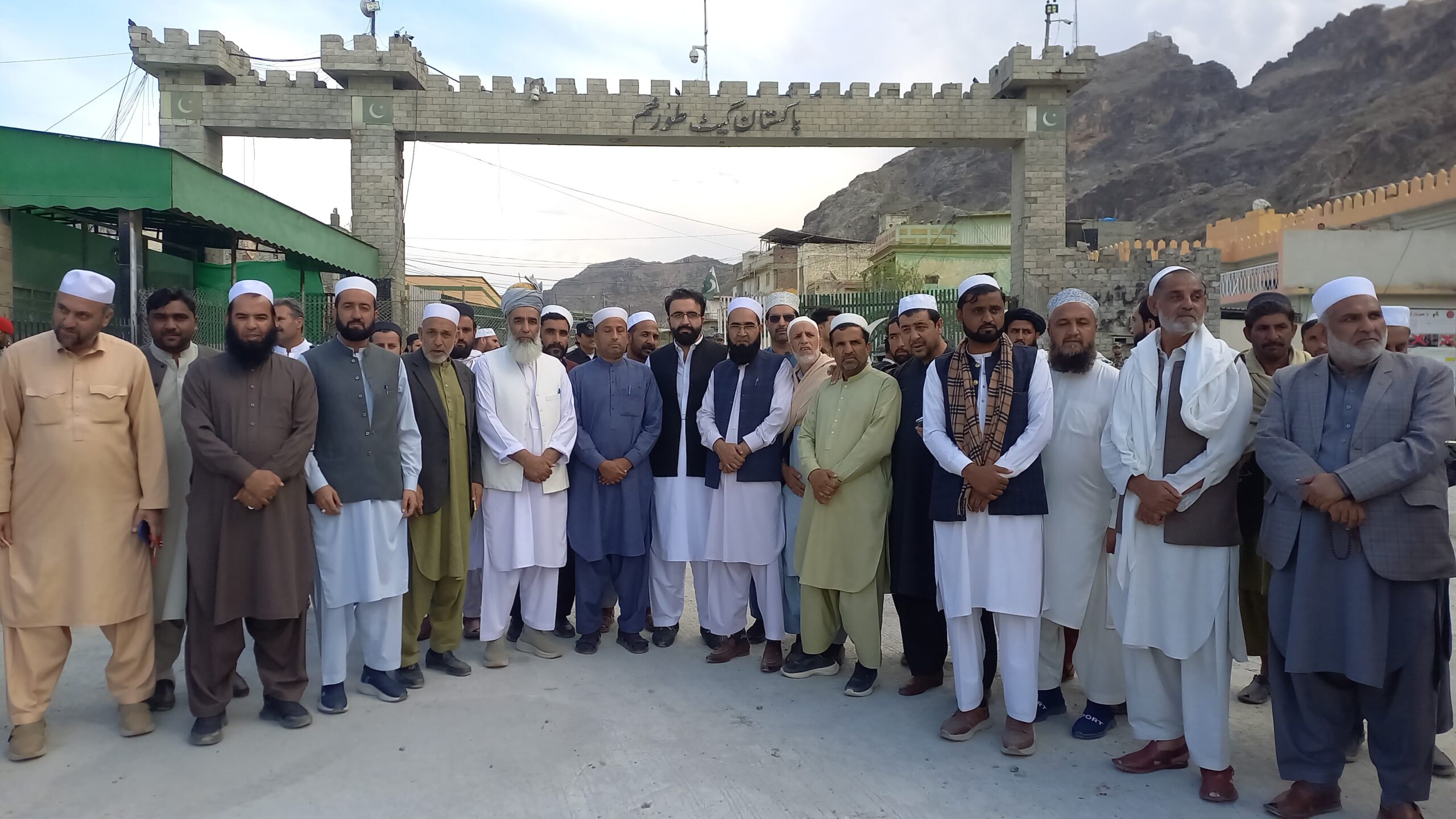 Tribal elders, whose intervention facilitated the return of Afghan children involved in smuggling, at the Pakistan-Afghan Torkham border. (Courtesy Hijrat Ali Afridi)