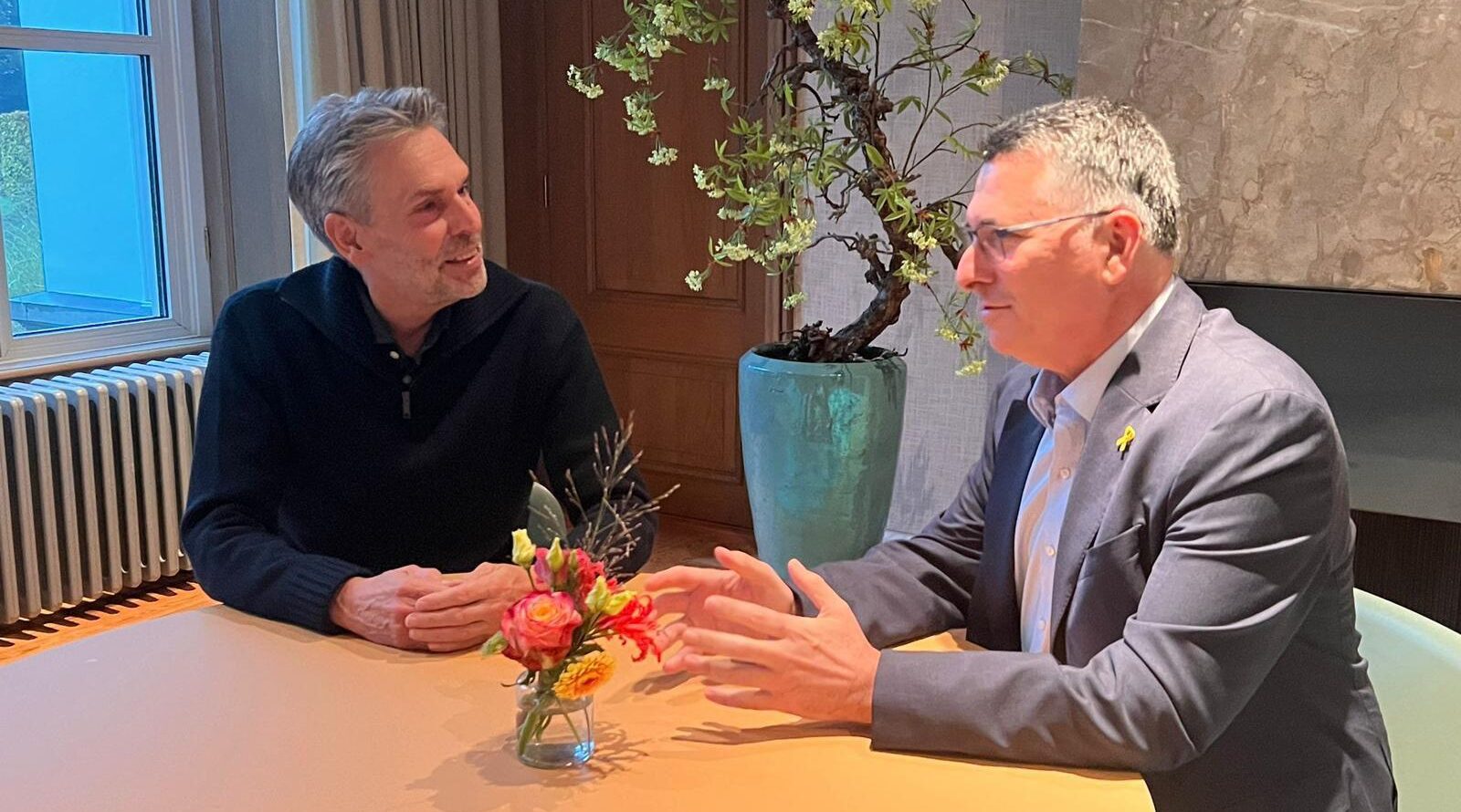 Dutch Prime Minister Dick Schoof (L) meets with Israeli Foreign Minister Gideon Sa’ar at Schoof’s official residence, The Catshuis, in The Hague, Nov. 9, 2024. (gideonsaar/Instagram)