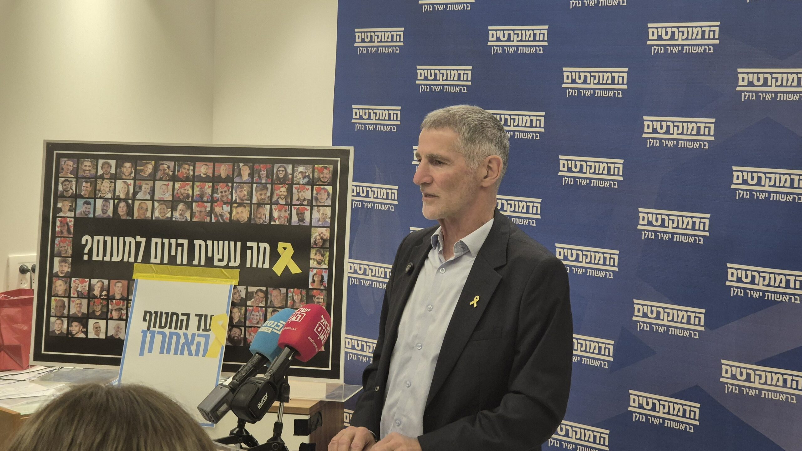 Yair Golan at a meeting of The Democrats faction in the Knesset, Jerusalem, Oct. 27, 2025. (Gabriel Colodro/The Media Line)