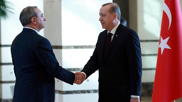 Ambassador Na’eh presents his credentials to Turkish President Recep Tayyip Erdoğan, December 2016. (Courtesy)