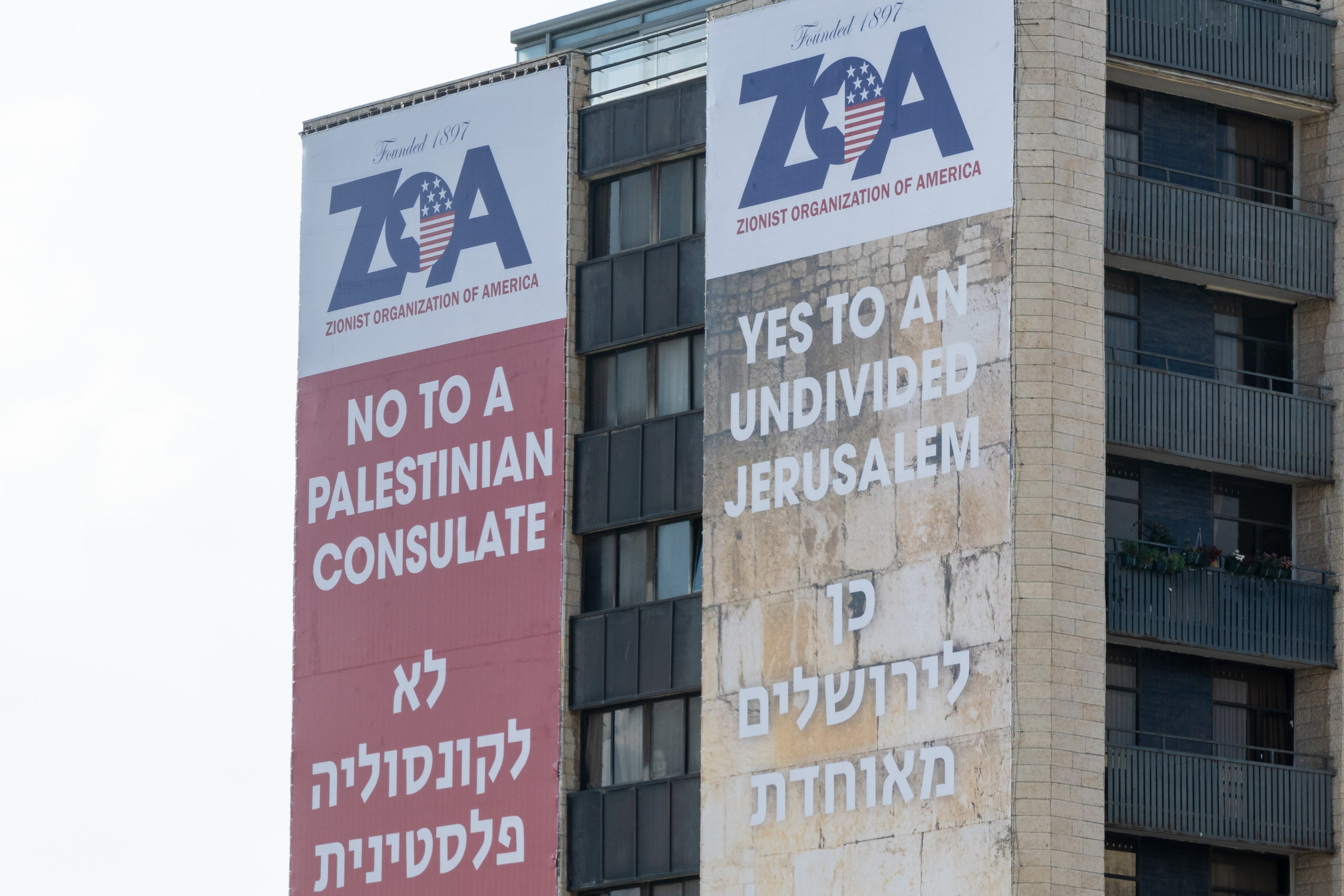 “No to a Palestinian consulate. Yes to an undivided Jerusalem,” read the billboards placed by the Zionist Organization of America, which launched a billboard campaign against the planned opening of the US diplomatic mission.