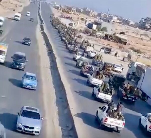 Syrian Border Guard forces deploy toward the Syrian Desert, Nov. 17, 2025. The convoy was en route to target Captagon smuggling operations near the Jordanian border. (Video still/eyewitness footage)